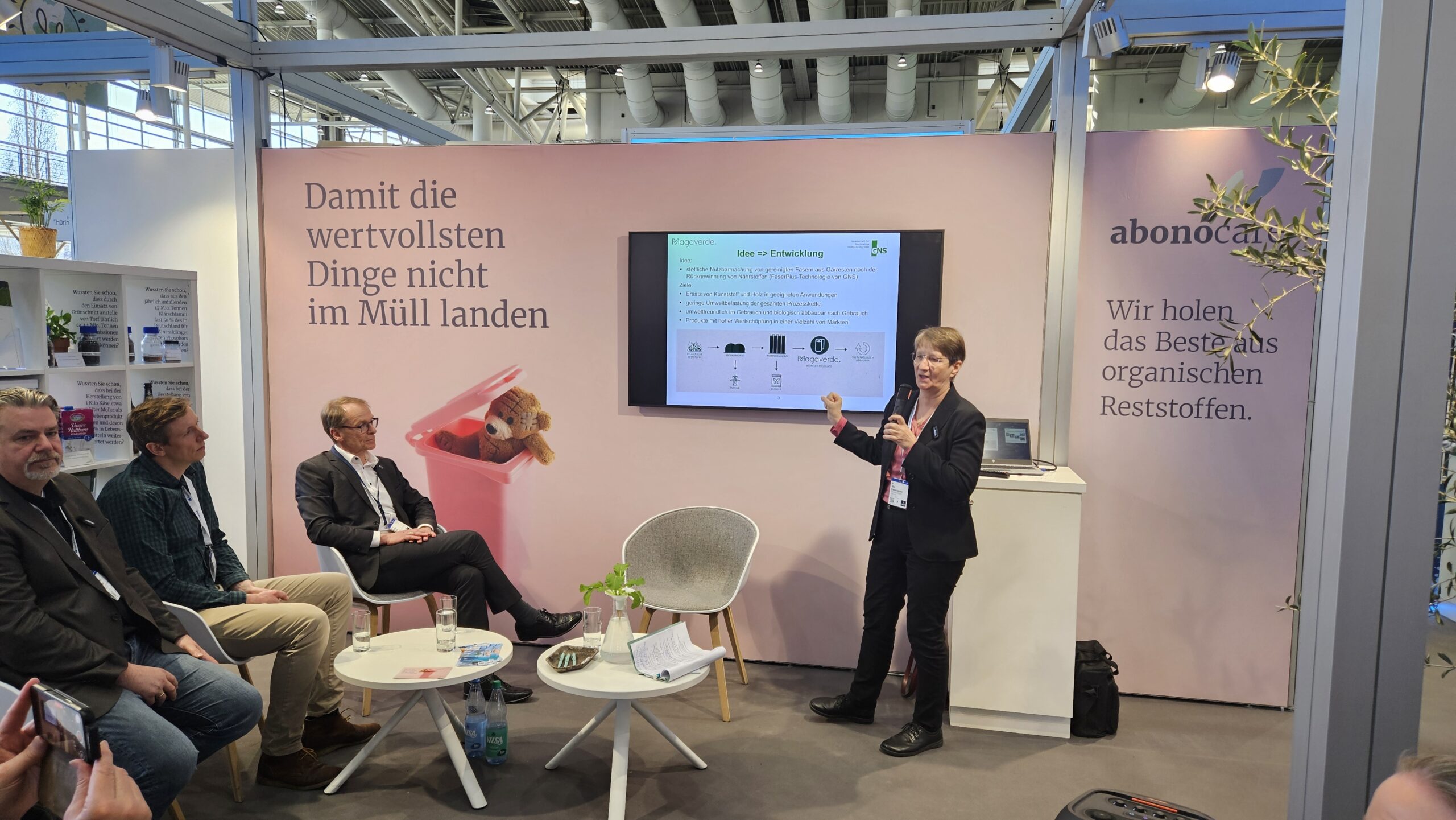 Auf der Hannover Messe 2025 präsentierte sich das abonocare-Cluster erstmals auf dem Gemeinschaftsstand „Forschung für die Zukunft“ einem breiten Publikum. Im Rahmen eines Forums wurden innovative Impulsvorträge und Best-Practice-Beispiele vorgestellt, die aufzeigen, wie organische Reststoffe durch moderne Technologien sinnvoll verwertet werden können.